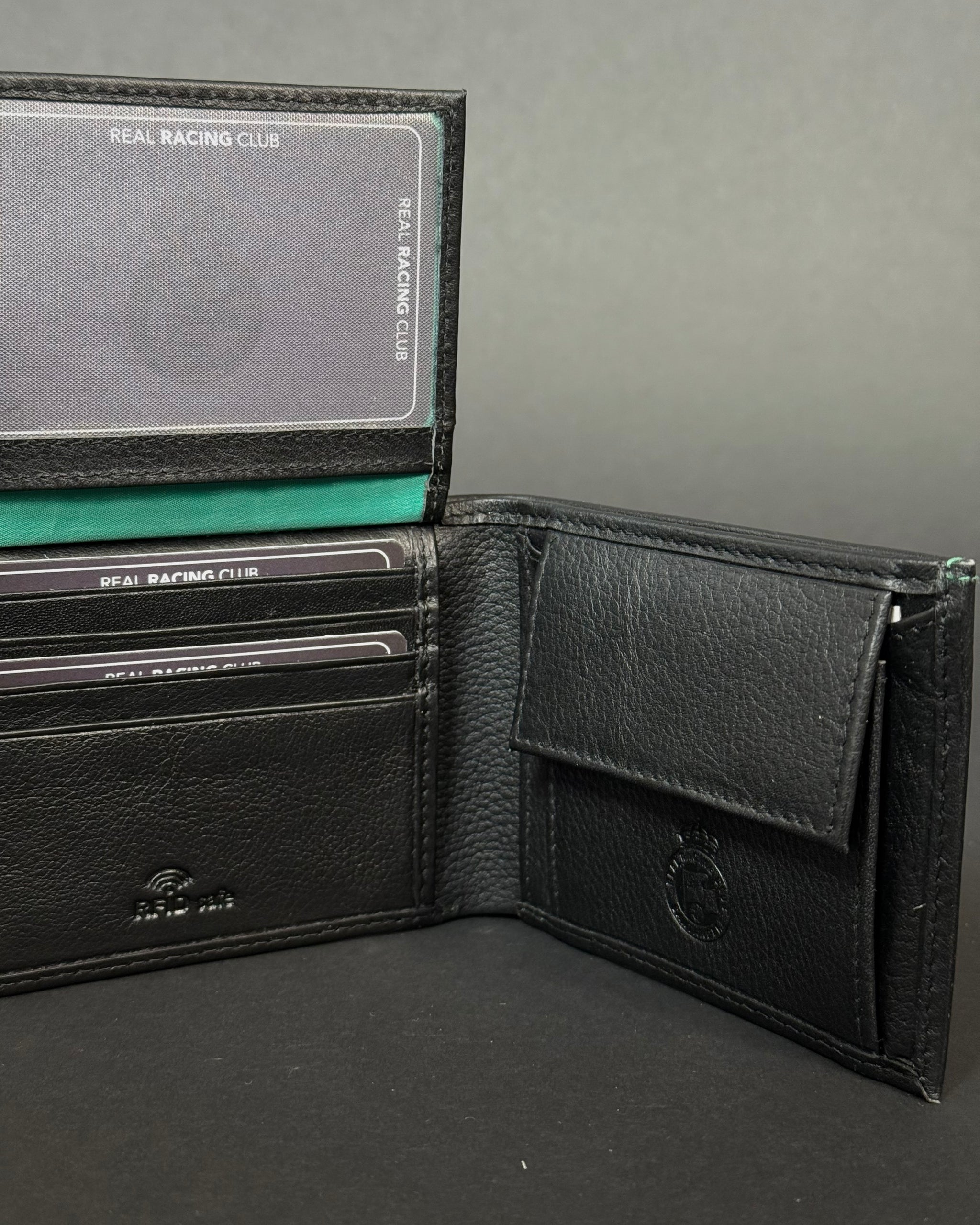Billetera estilo americana con diferentes compartimentos para guardar tarjetas y billetes, además de monedero.